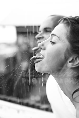 What a crazy day! Northern Illinois was more picturesque than I imagined with rolling green hills dotted with farmland, super tall corn, and all kinds of cool old barns. We got caught in a heavy rainstorm but made the best of it by getting an “American Gothic” image just before the deluge. A short stop at Sharky’s bar yielded some cool images with old signs, the band stage, and Paul and Emilie catching the raindrops on their tongues. When the rain finally let up a bit, we piggy-backed Emilie into “no trespassing” territory for the images that will probably be hanging on their walls soon. Both Paul and Emilie have HUGE families – check them out, I’m part of one. 🙂