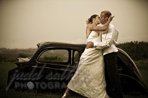 Paul and Emilie are such a fun-loving/adventurous couple that I had to censor some of the images – you guys will get to see them on the proofing site. 🙂 I love the “bride, mop bucket, beer” shot, Tom carrying Emilie to the rusty car, and the shine of rain on the wedding party – what troopers! The Bridesmaids went through the cattle catchers… yikes! What a great weekend! -Judd
